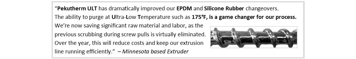 Pekutherm® has been helping molders in the Plastics Industry to save time & money for many years. We have saved them (and continue too) with rapid and complete color changeovers and through material conversions. The deep-down soft-scrub unique to Pekutherm® removes carbon build up and previous residues.
